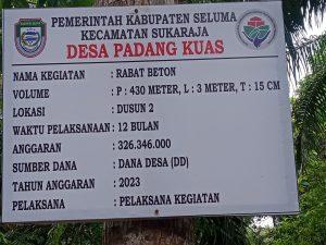 Peroyek Pekerjaan Rabat Beton Desa Padang Kuas yang Bersumber dari Dana Desa Tahun 2023 sebesar Rp.326.346.000. di duga ada korupsinya.