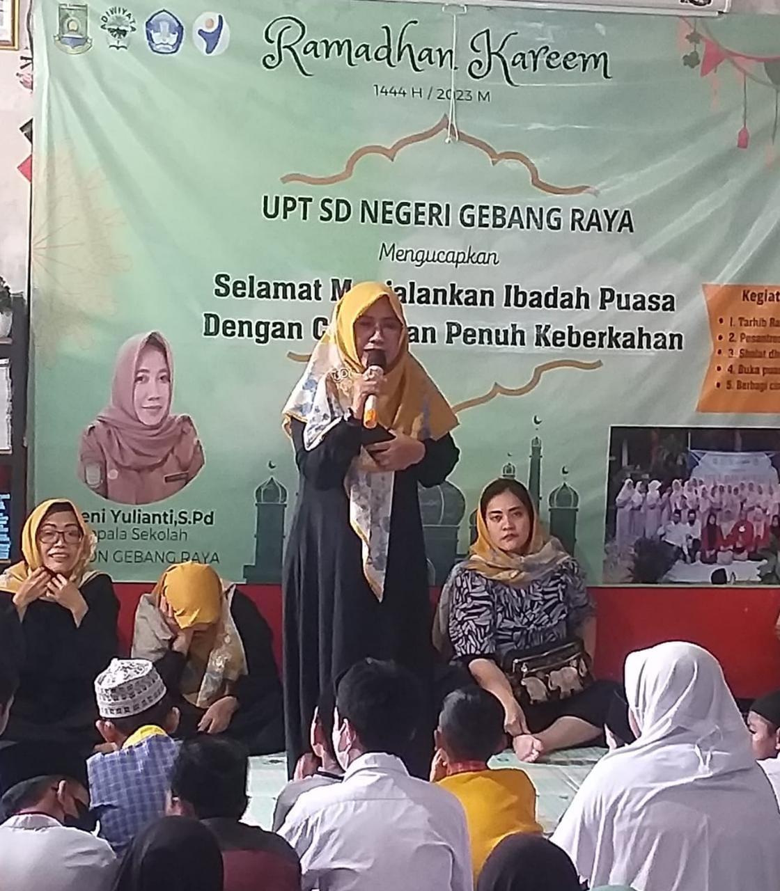 Kepala SDN Gebang Raya Beni Yulianti S.Pd mengatakan, Pesantren Kilat (Sanlat) merupakan salah satu kegiatan yang mendapat kebaikan, karena didalamnya diisi dengan nilai-nilai positif islami. “Untuk itu ibu sangat berterima kasih kepada bapak/ibu guru dan siswa yang selama empat (4) hari ini dalam kegiatan Pesantren Kilat, tetap semangat ya anak-anakku dalam puasanya lancar sampai hari terakhir,” ucap Beni Yulianti S.Pd diruang kelas sekolah setempat Kamis (6/3/2023).