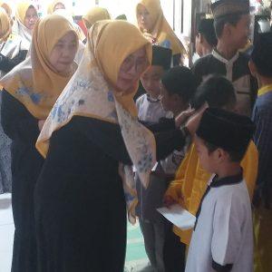 Acara diakhiri dengan santunan anak yatim dan piatu yang ada di SDN Gebang Raya sebanyak 24 siswa, dengan suasana haru satu per satu secara simbolis santunan diberikan langsung oleh kepala sekolah Beni Yulianti S.Pd. ” Jujur ibu terharu melihat mereka yang masih usia anak-anak seperti ini sudah harus ditinggalkan orang tua, semoga anak-anak yatim ini tetap semangat dalam belajar, kelak menjadi anak yang berguna bagi bangsa, agama dan negara,” tutupnya.(Fajar)